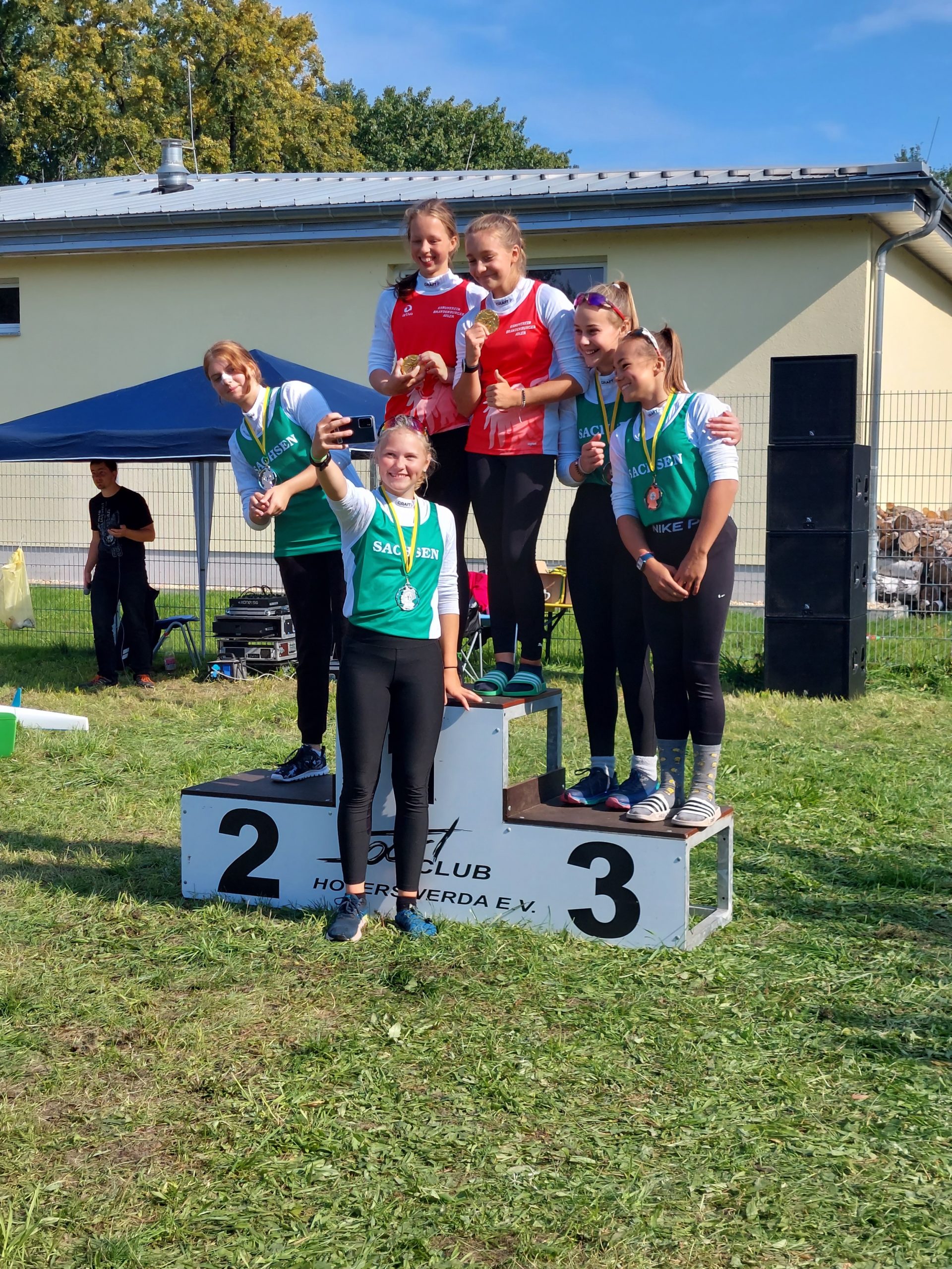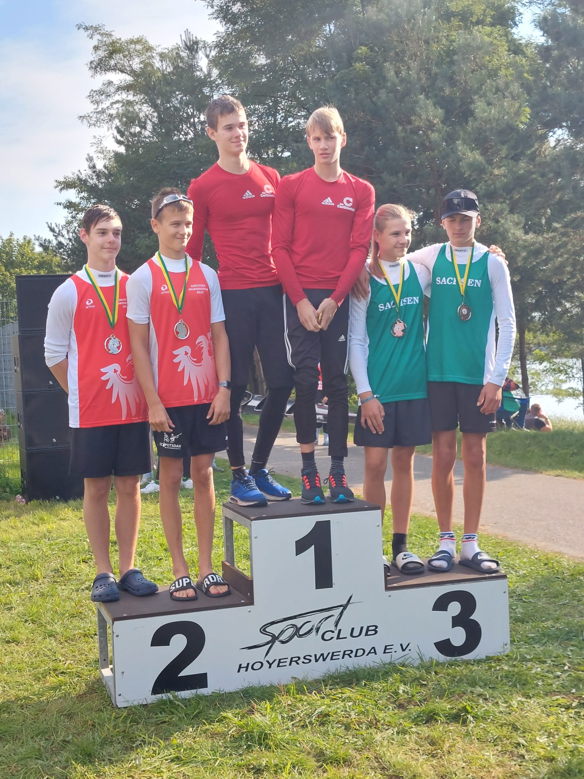 Am Sonntag gesellten sich dann Mecklenburg, Brandenburg, Berlin und Sachsen-Anhalt dazu und es wurde eine zünftige Regatta Bundesland gegen Bundesland. Die Mannschaftswertung ist dann immer heiß umkämpft, insbesondere zwischen Brandenburg und Sachsen. Vom VKD paddelten im Sachsentrikot um die Wette: Nadiia, Franz, Luisa, Helene und Johanna. Es gab reichlich Edelmetall, sogar die wunderschöne Plakette, die für alle hoffnungsfrohen jungen Sportler die nahenden Olympischen Spiele in Paris 2024 ankündigt.