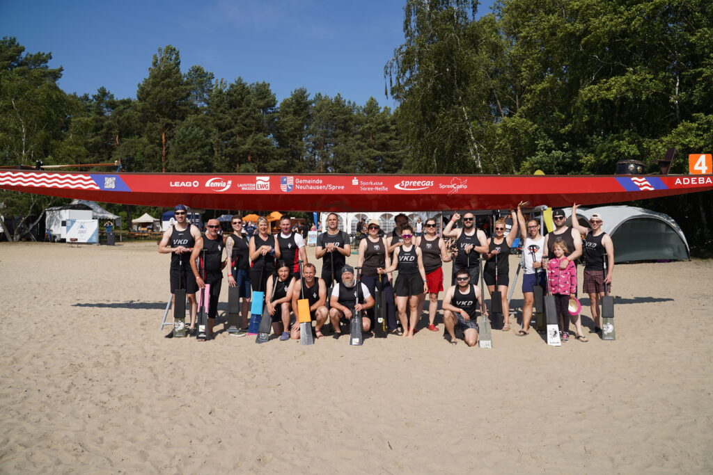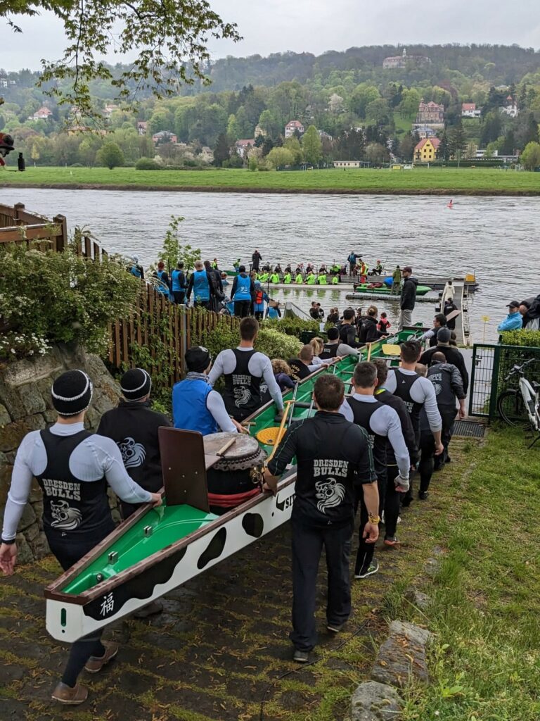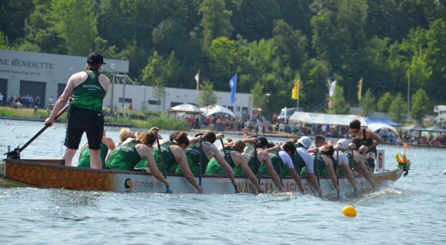 Nach dem Mittag wurden dann die traditionellen „Dragolympischen Spiele“ ausgetragen. Dabei haben sich die Teams dieses Jahr im Paddelweitwurf, 4-Personen-Sackhüpfen, Tauziehen und Bierkastenstapeln gemessen. Die Ghostdragons aus Halle konnten sich dabei den 1. Platz sichern.