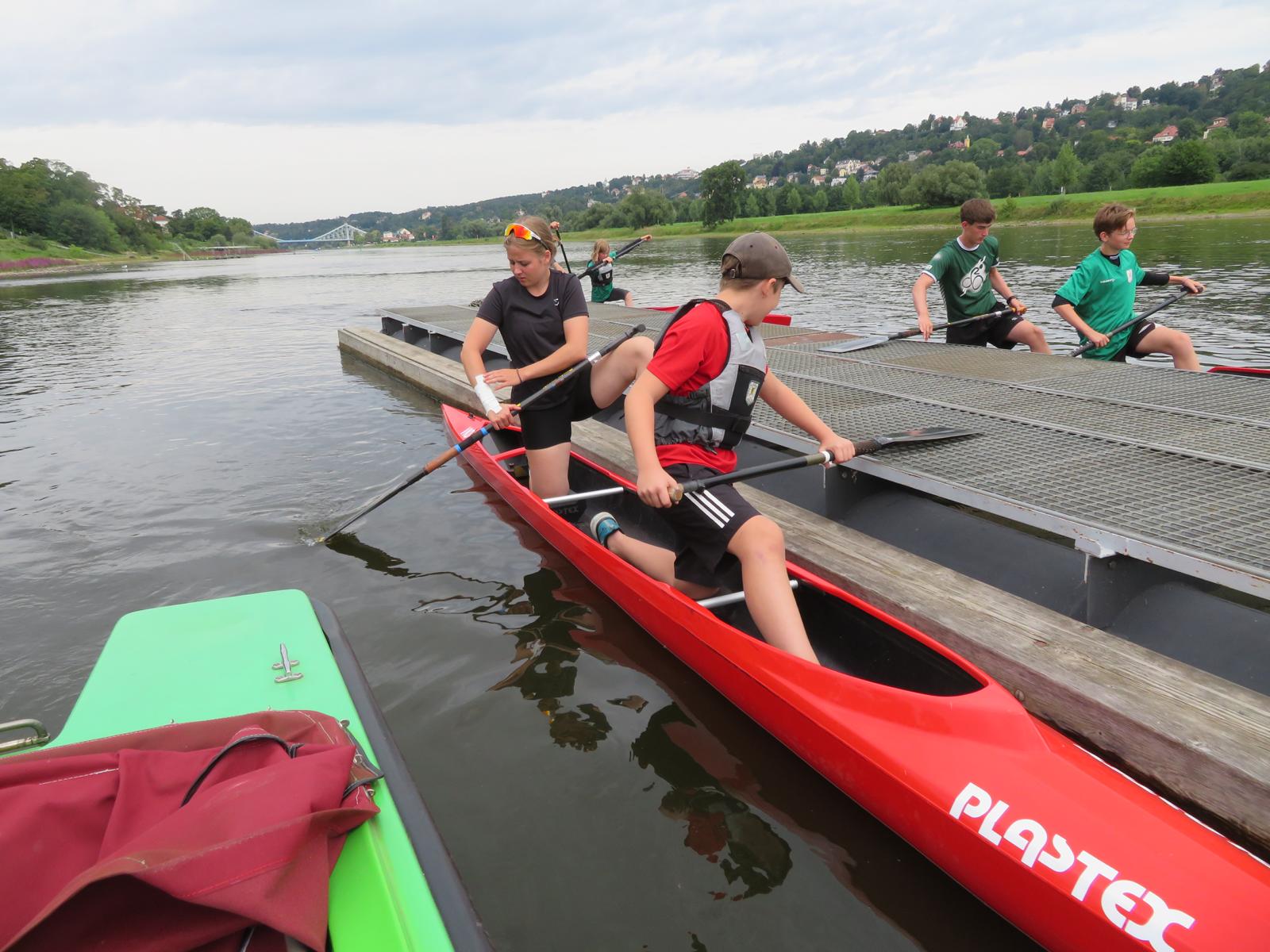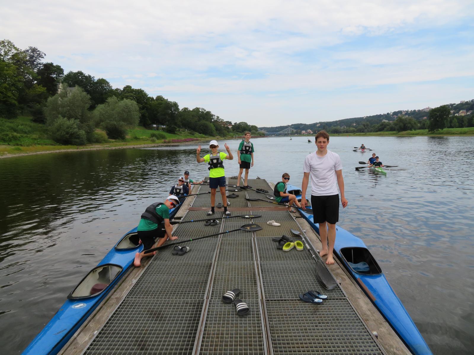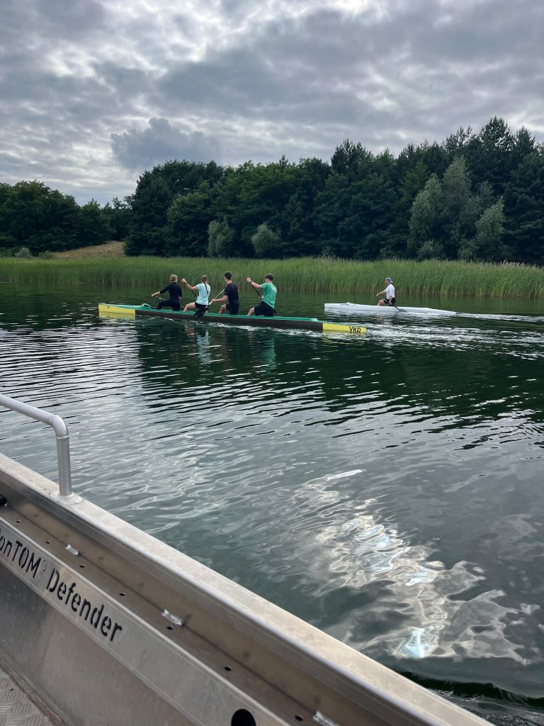 Damit bleiben dann noch 25 kleine und große Paddler für das Trainingslager beim VKD übrig. Bestens bekocht von unseren unermüdlichen Eltern wurde die Ferienmüdigkeit abgeschüttelt und mächtig gewaltig Fortschritte erzielt. Die Trainer kamen gar nicht hinterher, Sportler in neuere und bessere Boote umzusetzen, weil sich soviele Kajaks und Canadier nun sicher und schnell über die Elbe bewegten. Die Zweier und Vierer kamen fast jeden Tag zum Einsatz und so stellte sich tatsächlich ein Rhythmusgefühl ein. Wir freuen uns auf die nächsten Regatten und Herausforderungen! Auf ein tolles Schuljahr 2025/2026.