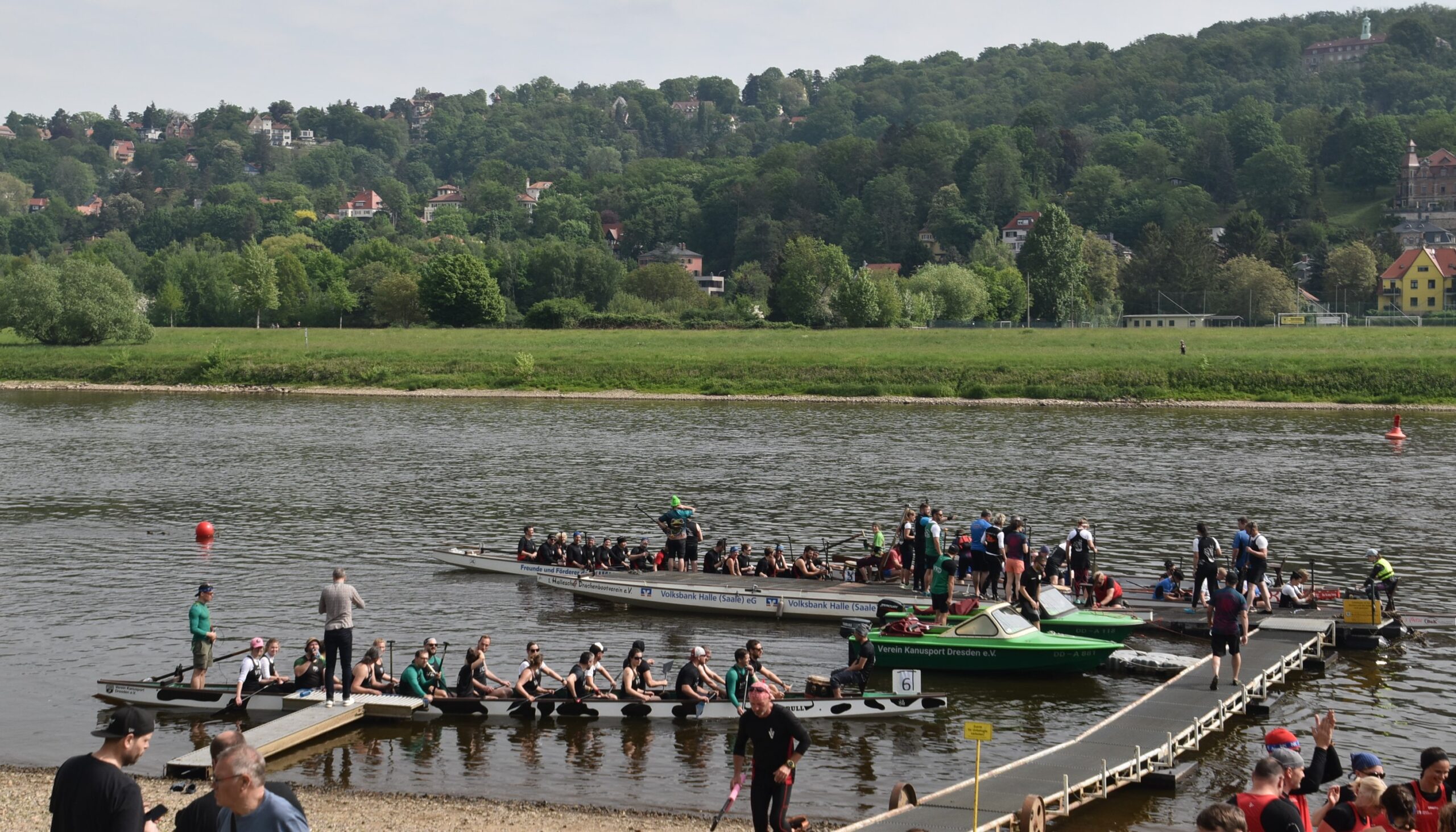 Ein besonderes Highlight folgte Anfang Mai: Nach unserem großen Tag der offenen Tür zum Vereinsjubiläum „100 Jahre Bootshauses Tolkewitz“ starteten wir den 16. Dresdner Schlössercup. Als Veranstalter begrüßten wir fünf Gastteams auf unserem Gelände, sorgten für Versorgung, Organisation der Regatta und gute Stimmung. Unser Drachenbootteam selbst belegt im Verfolgungsrennen über rund acht Kilometer schließlich selbst den vierten Platz – gefeiert wurde anschließend trotz Sturm bis in die frühen Morgenstunden.